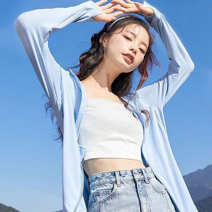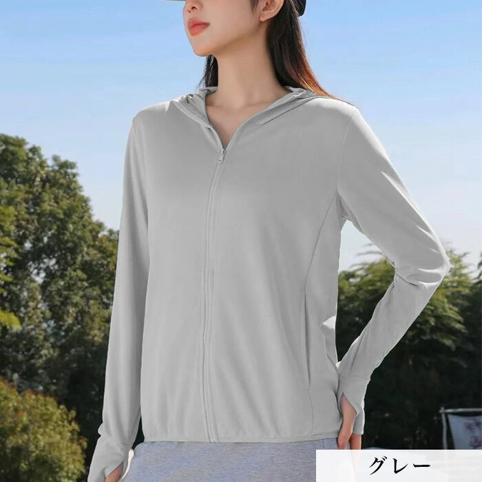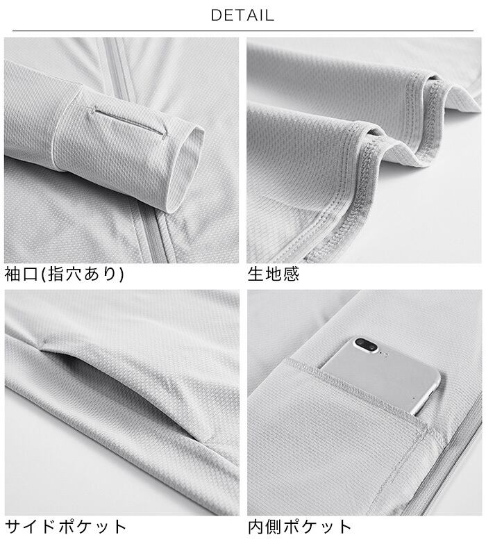 紫外線対策にSPF50+のラッシュガードパーカーをお使い下さい。おでかけ、ランニング、リゾートや旅行はもちろんオフィスや電車での冷房対策にも!軽量でバッグに入れて持ち運びも可能。指穴付きなので手の甲から日焼け対策ができます。