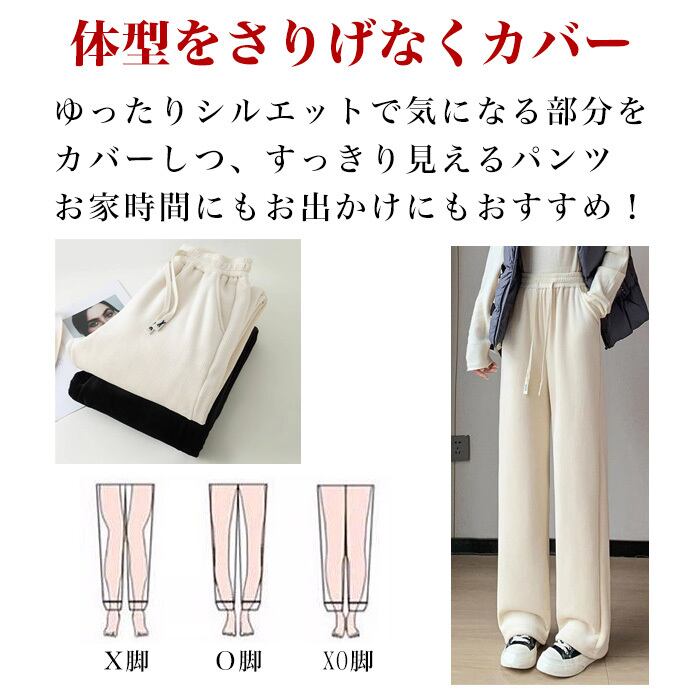 動きやすくてあったかい。ウエストゴムと調整紐でラクに穿ける、体型カバーイージーパンツ。裏ボア仕様で冷え知らずの暖かさ!ゆったりシルエットで気になる部分をしっかりカバーしつつ、すっきり見えるデザインです。おうち時間にもお出かけにもおすすめの万能パンツです。