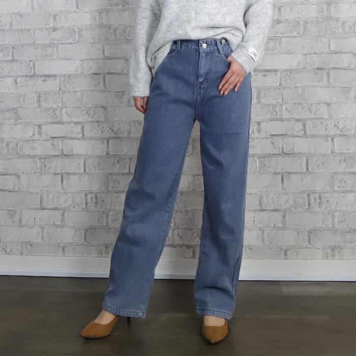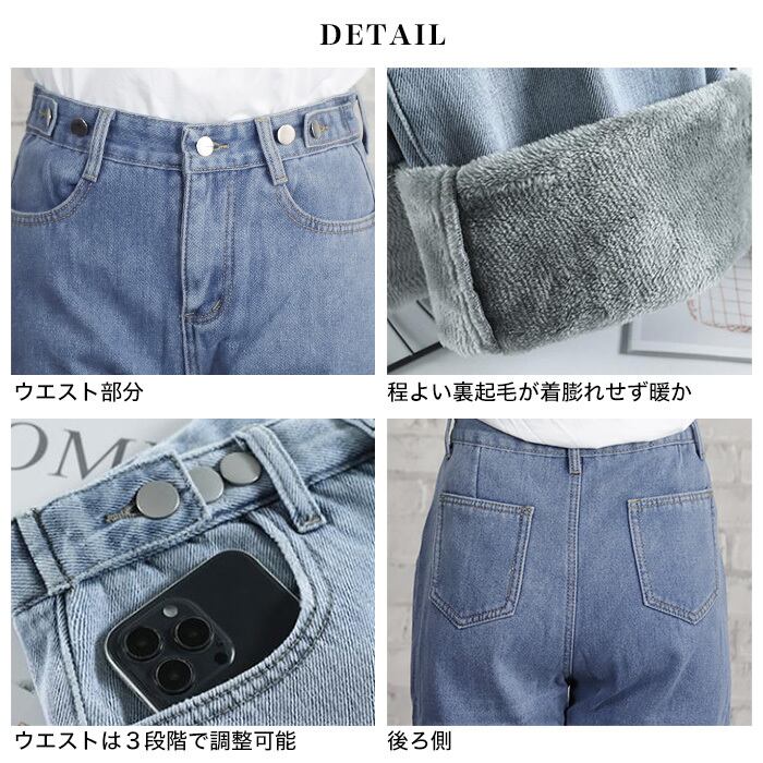 程よい裏起毛であたたかい、冬に手放せないデニムパンツ。裏起毛素材が保温してくれるため、寒い日の外出や長時間の着用でも快適です。ややゆとりのあるシルエットとフリーサイズ設計で、締めつけ感が少なく楽ちん。デイリーに使いやすい安定した穿き心地です。オーバーサイズのニットやカジュアルなスウェット、ブーツやスニーカーとも好相性。1本持っていると冬のコーデがぐっと暖かく、バランスよく仕上がります。