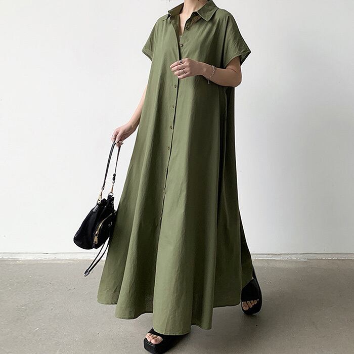 ― 前開きで“ワンピにも羽織にも”使える万能ロング丈 ―