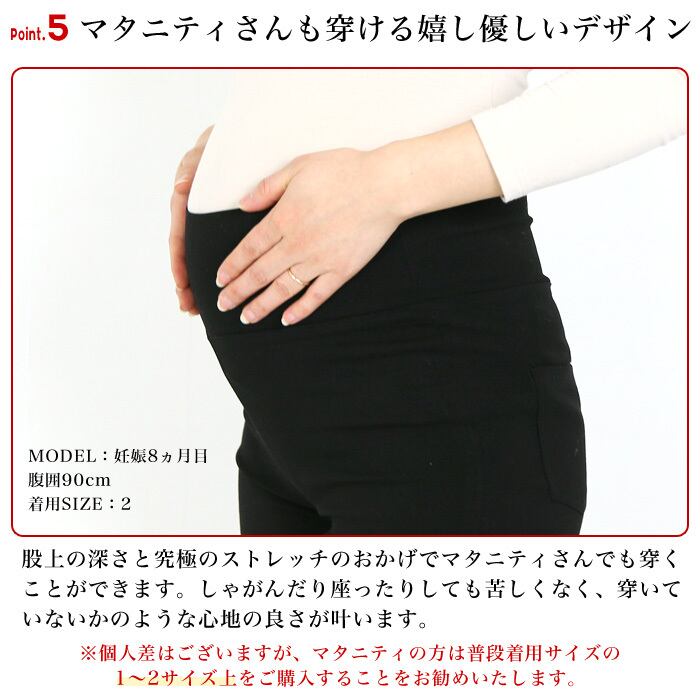 商品名の通り、驚くほどすごく伸びるスキニーボトムだから、細身の方からマタニティの方までノンストレスで楽に着て頂くことができます。