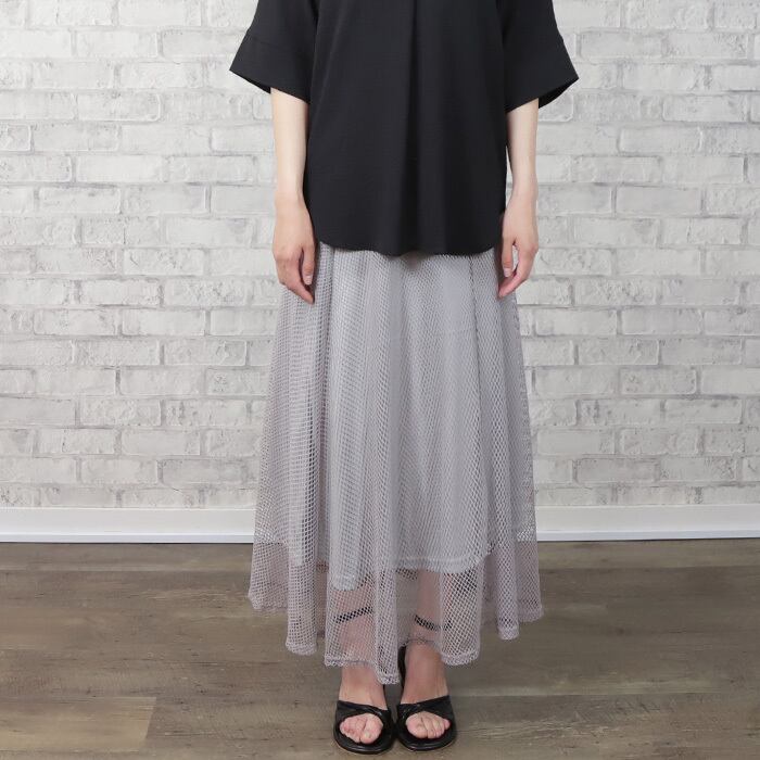 メッシュ素材とレース素材、大流行の透ける素材が魅せるトレンドライクな2Wayのマキシスカート。
