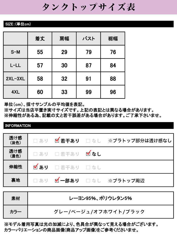 【カラー】タンク、キャミ共に…グレー/ベージュ/オフホワイト/ブラック