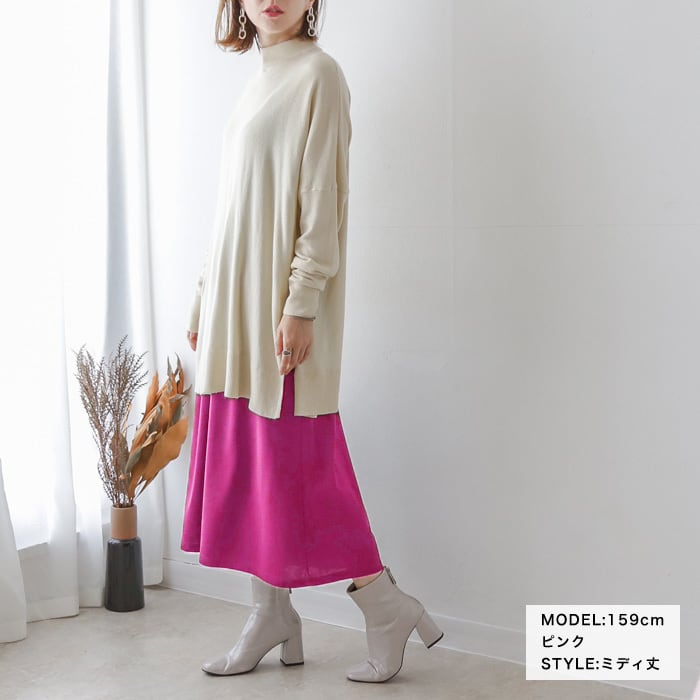 細身さんから大きいサイズの方まで選べる2サイズ展開に、脚のラインを綺麗に魅せるフェミニンな「ミディ丈」と品よく大人っぽく着こなせるオールラウンダーな「ロング丈」の2丈をご用意。